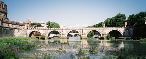 and across the Ponte Margherita to the Piazza Cavour (they are digging up the middle of the plaza,) around the star-shaped moat of the Castel (under the Pope’s emergency sky bridge) and down to the river at the Ponte San Angelo to walk back here along the river, which as usual we had to ourselves with a few bums, the seagulls, a mother duck and her ducklings and (a first for me) a river otter.